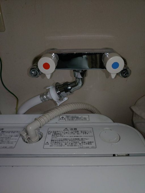 お伺いしたところ洗濯蛇口から水漏れと洗濯ホースが固くなって取り替え交換がご自身で出来なかったようでした。