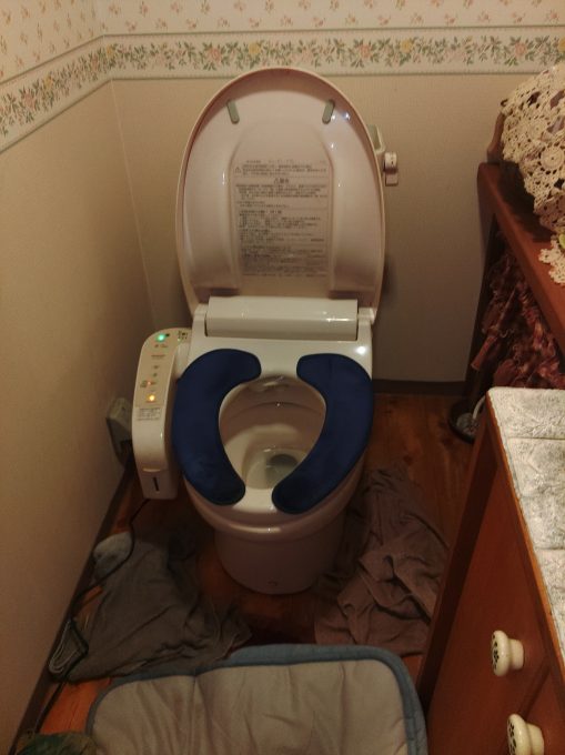部品交換も調べましたが、製造終了からかなりの年数がたっており、その他の劣化もあったため、お客様とご相談の末、トイレ全体の交換作業となりました。