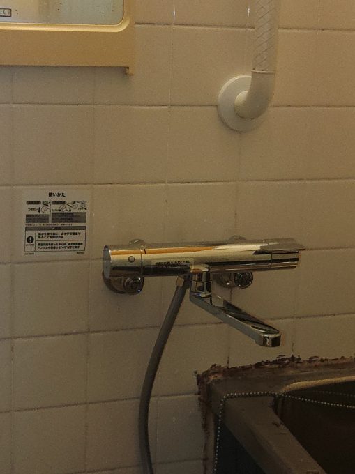 また、使い勝手の良さと、予算も加味して、今までお使いのハンドル蛇口ではなく、サーモスタットタイプの蛇口での交換作業となりました。
