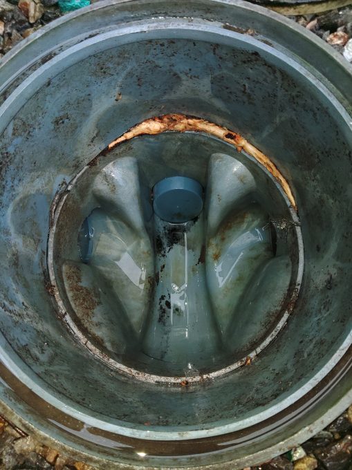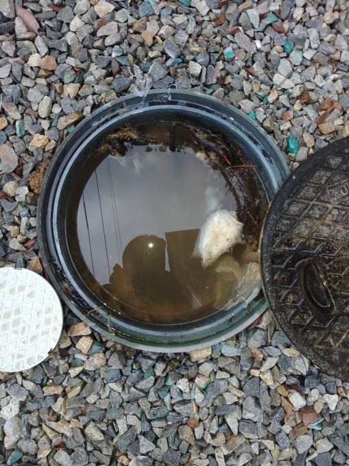 外の排水桝を全て点検させていただき、下水に繋がる最終桝の木の根っこが流れを塞き止めている状態で木の根っこの除去と高圧洗浄を提案させていただきました。