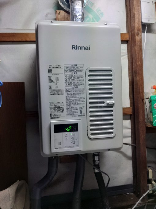 ガス給湯器かなり長持ちされているもので修理は難しい状況でガス給湯器の交換を提案させていただきました。お風呂場が寒いとの事で浴室暖房乾燥器の取り付けも提案させていただきました。