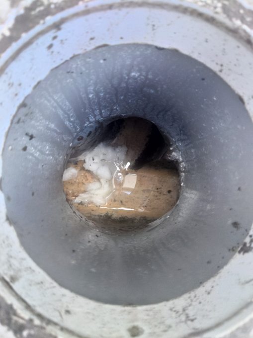 点検後、台所下のシンクから屋外の排水マスの油詰まりが原因とお客様にお伝えしたところ、この際綺麗にしてしまいたいと排管清掃作業のご依頼をいただきました。