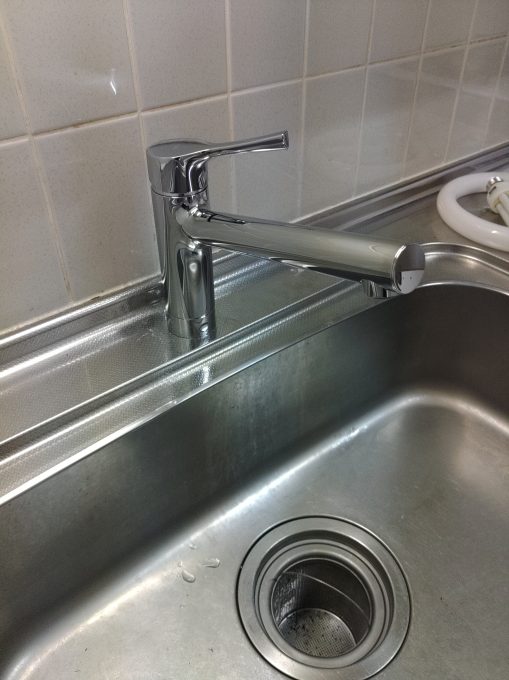 早期解決をご希望で即日作業をおこないました。止水と養生を行い、蛇口を取り外して同じシングルレバー吐水混合水栓に交換し、通水チェックをおこない作業完了いたしました。