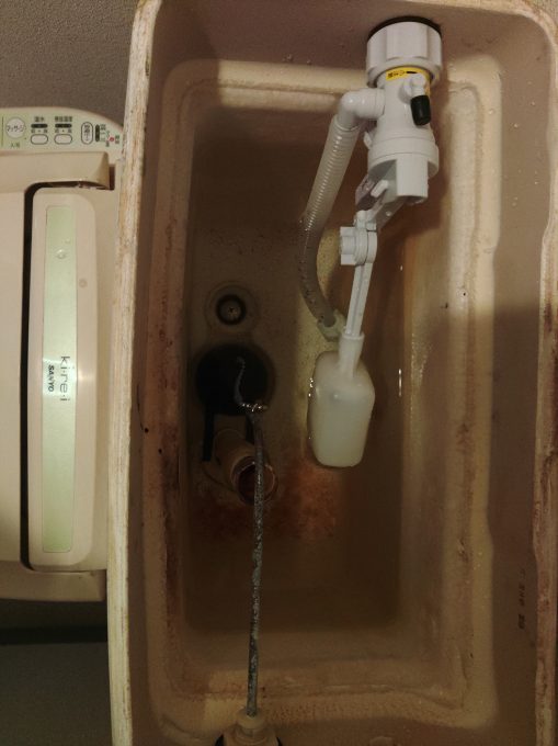 1ヶ月前程前からのトイレの水漏れとのことでご依頼いただきました。タンクの中から水漏れしており、あと数年しか使用しないとの事で部品交換を依頼いただきました。